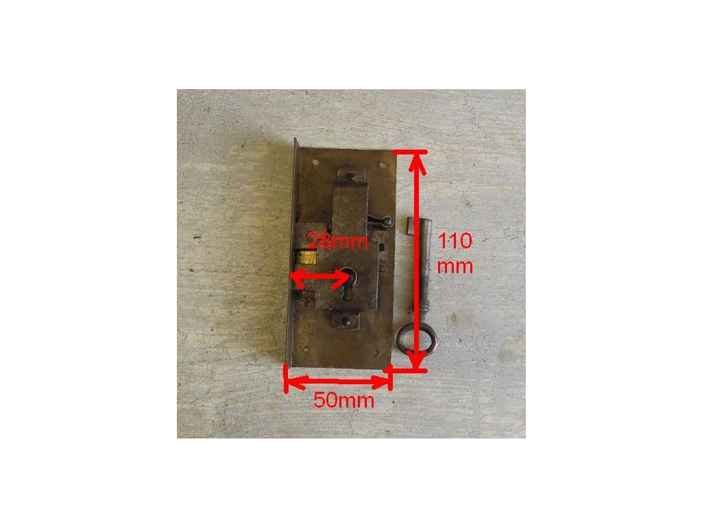 antikový zámek do skříně s klíčem, rozměry viz foto