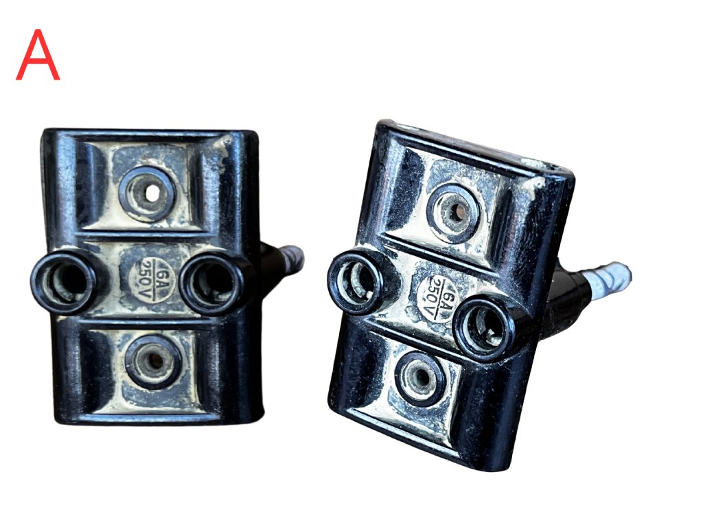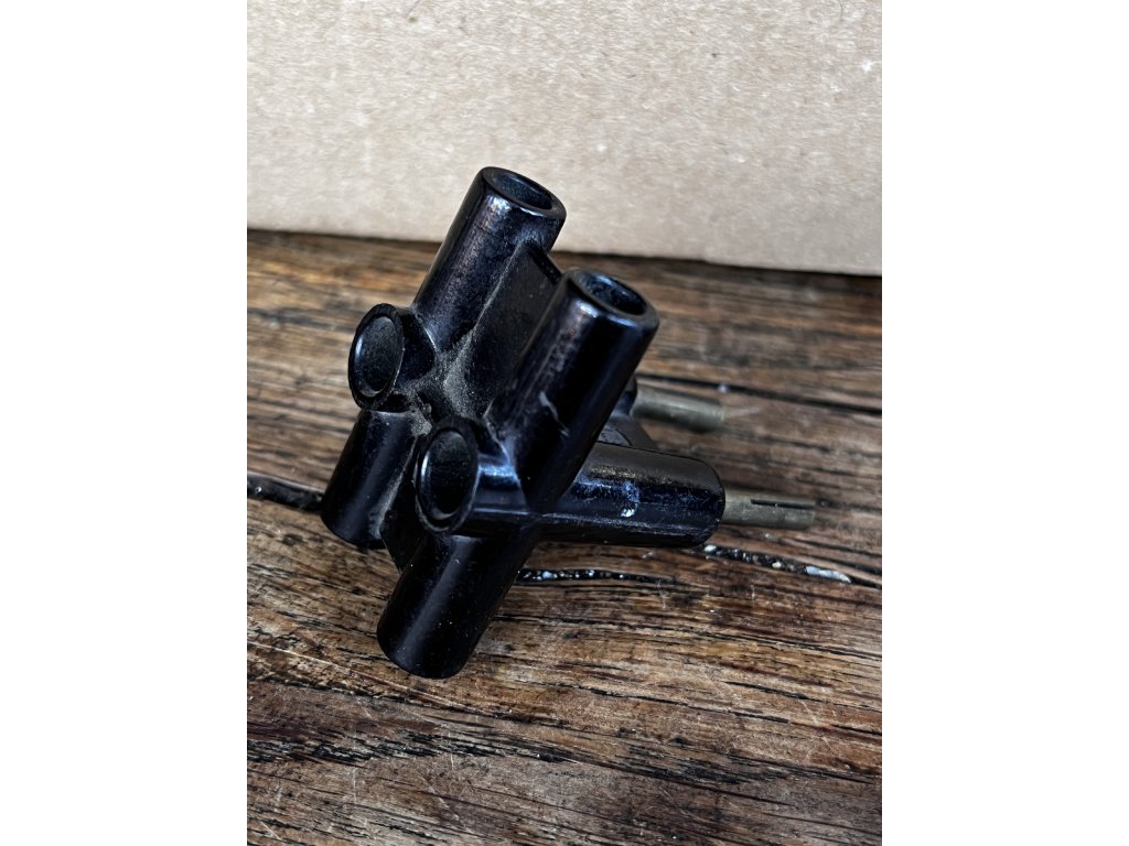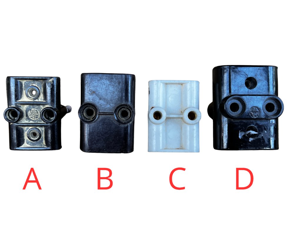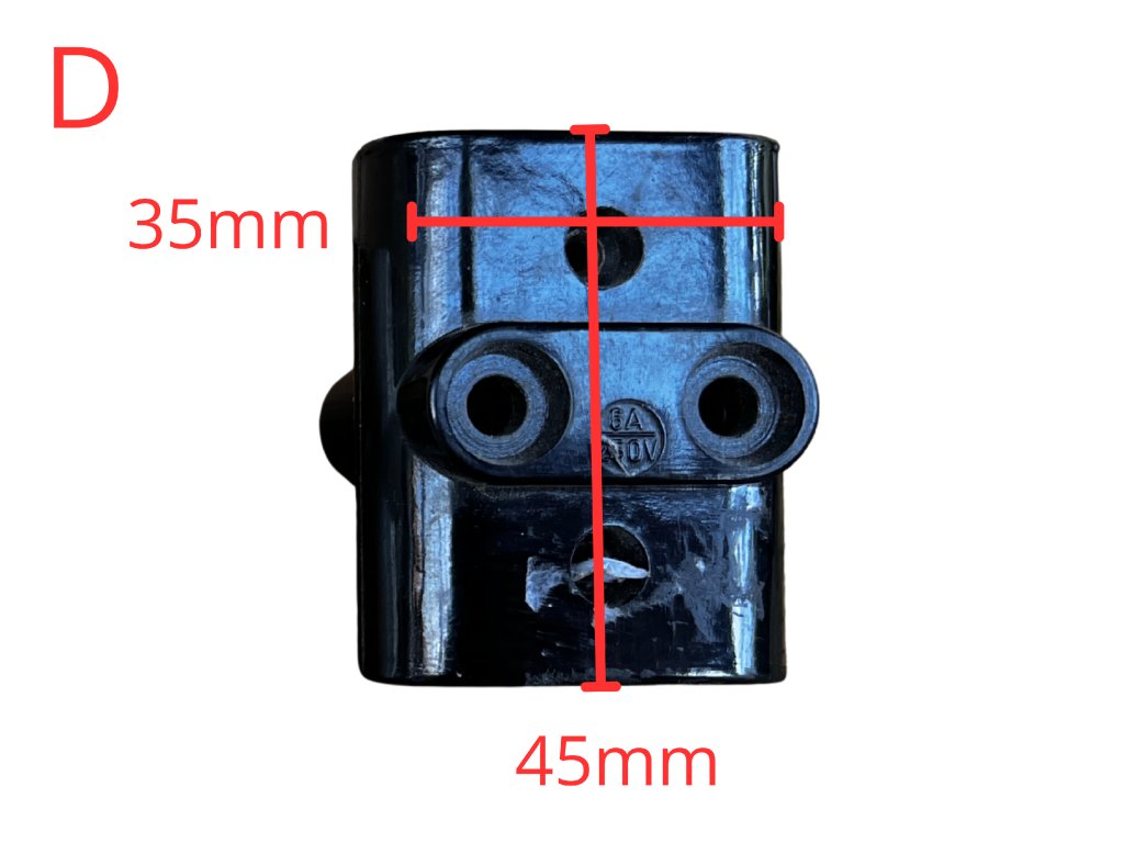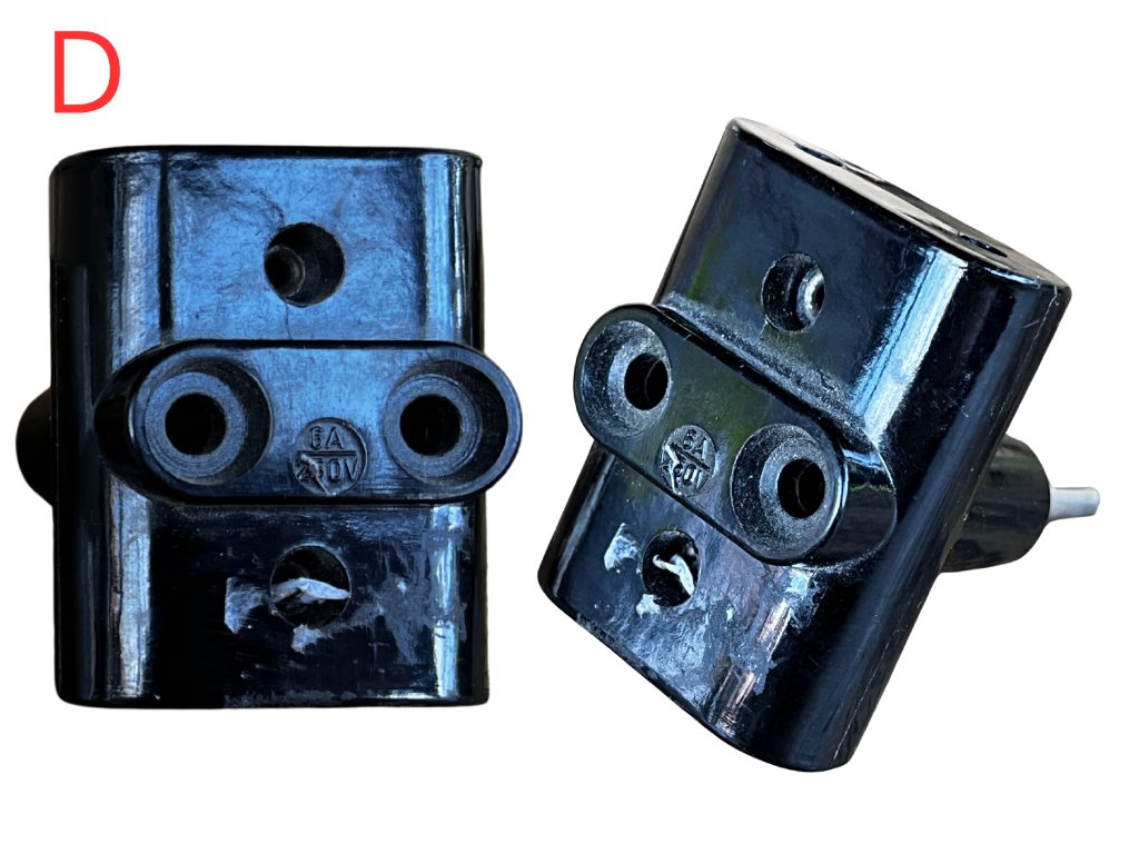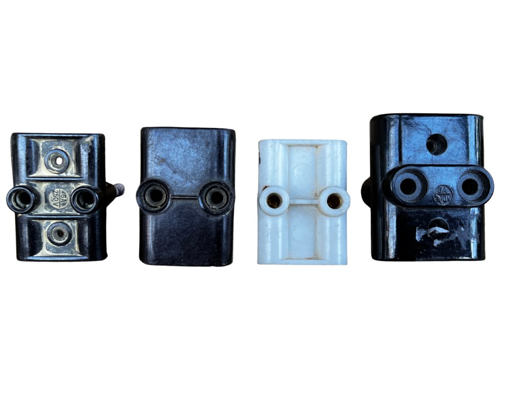 Původní bakelitová zásuvková rozdvojka, používaná u starých lampových rádií, gramofonů a drobných spotřebičů. U nekterých může chybět spodní krytka.