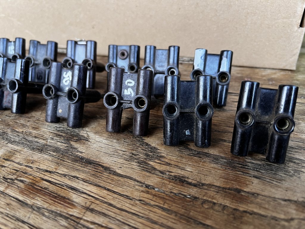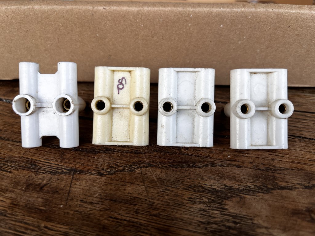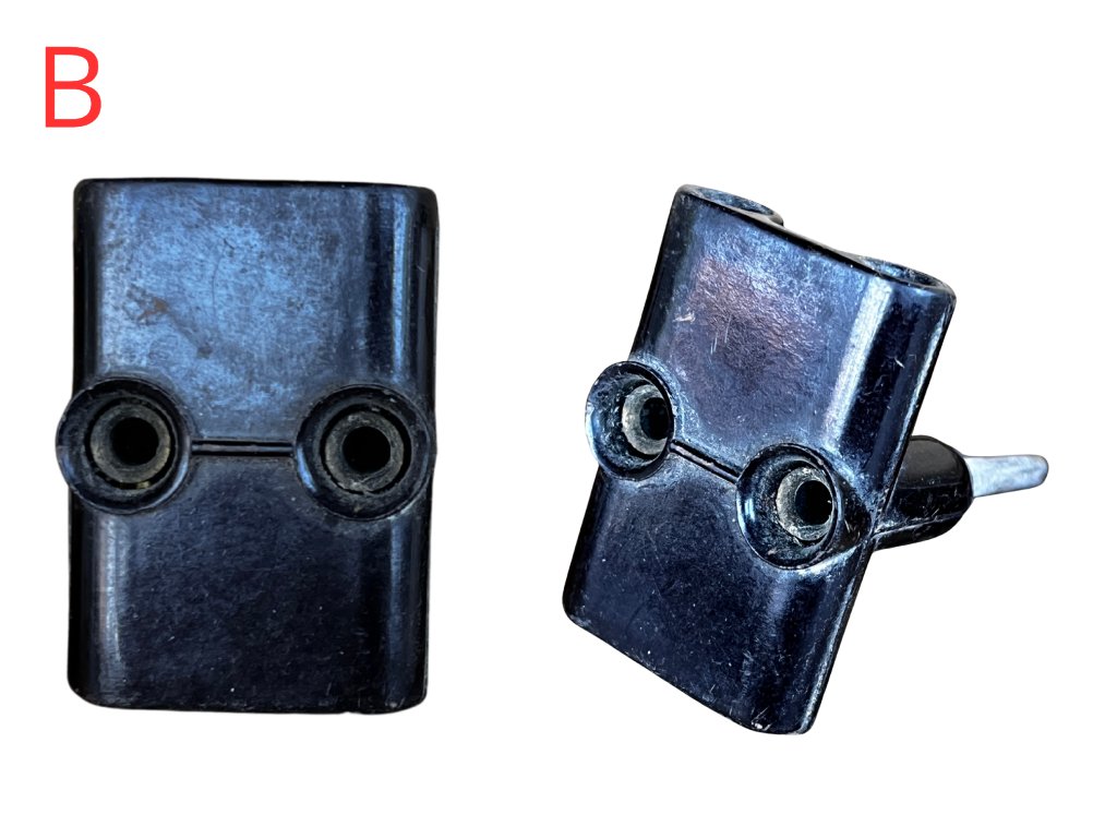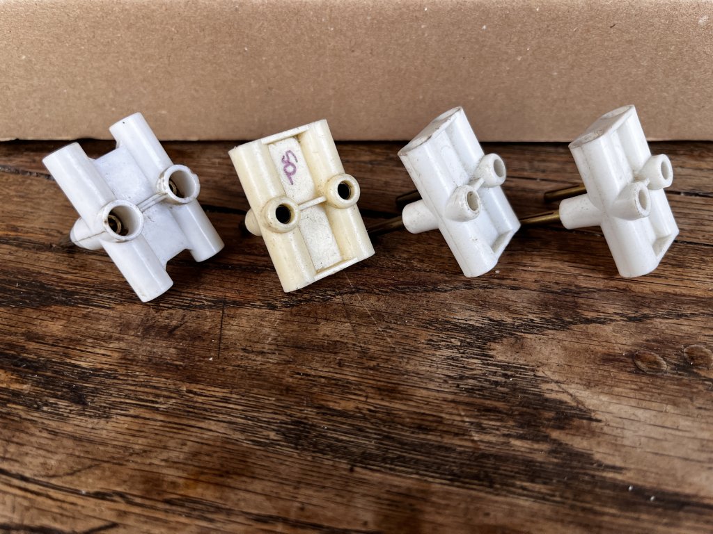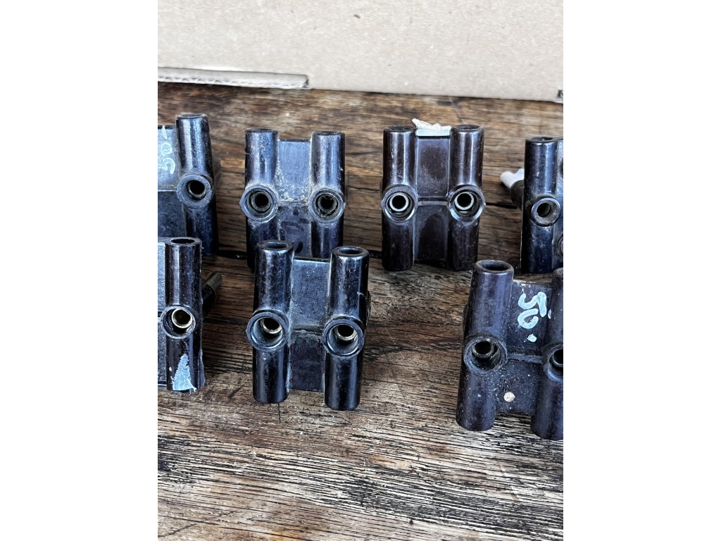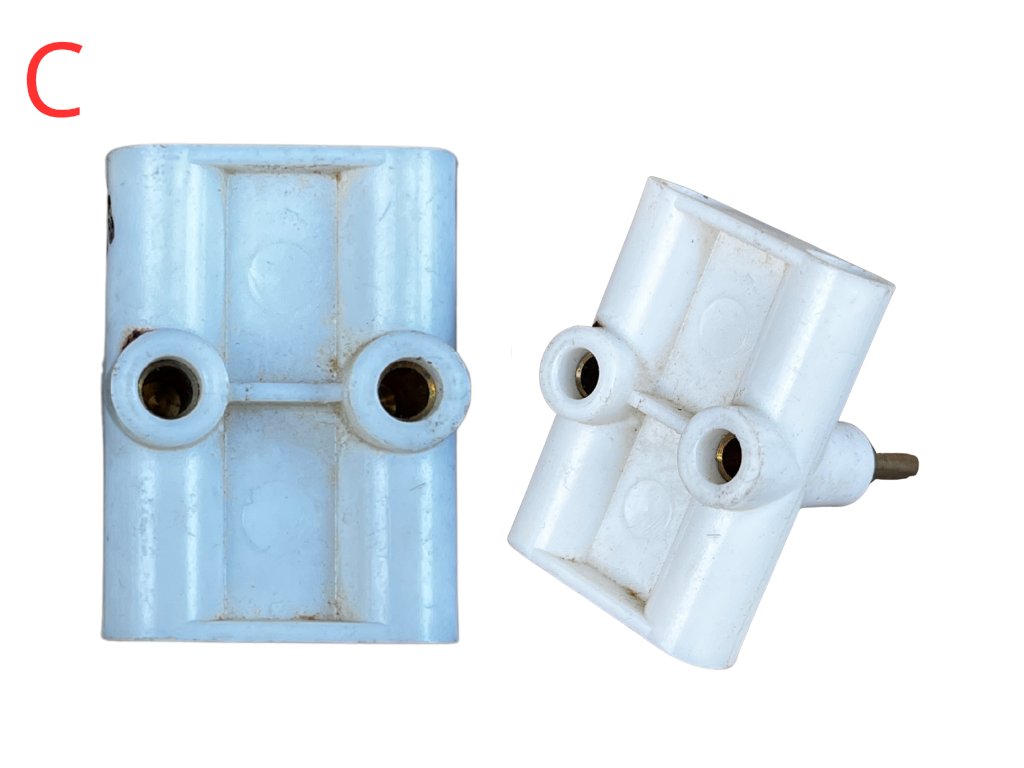 Původní bakelitová zásuvková rozdvojka, používaná u starých lampových rádií, gramofonů a drobných spotřebičů. U nekterých může chybět spodní krytka.