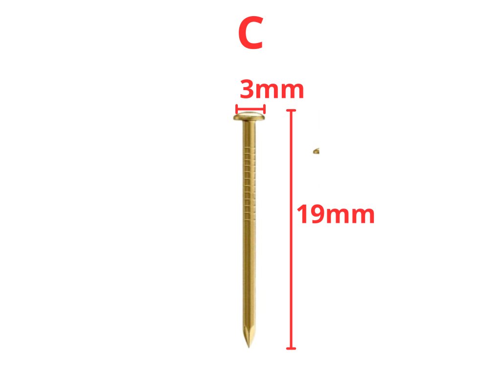 Mosazné leštěné kování,lze zakoupit různé varianty. Pro uchycení lze dokoupit hřebíčky K42B-15mm.
