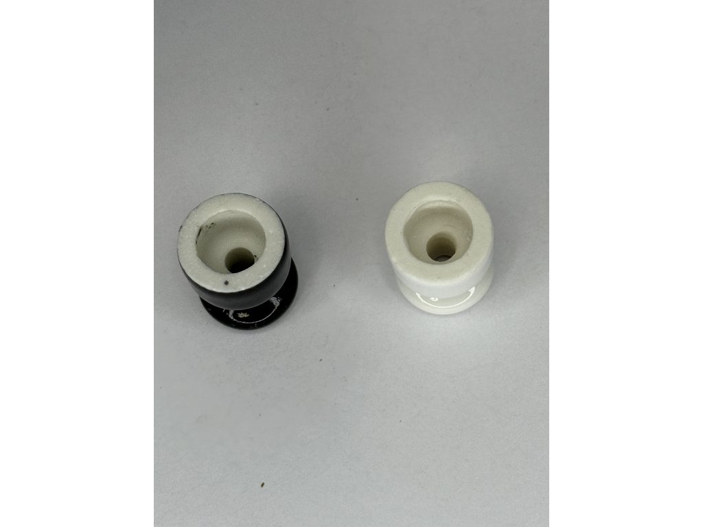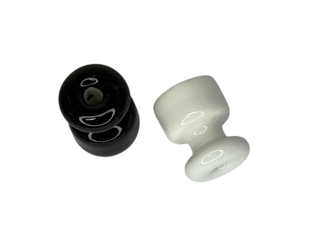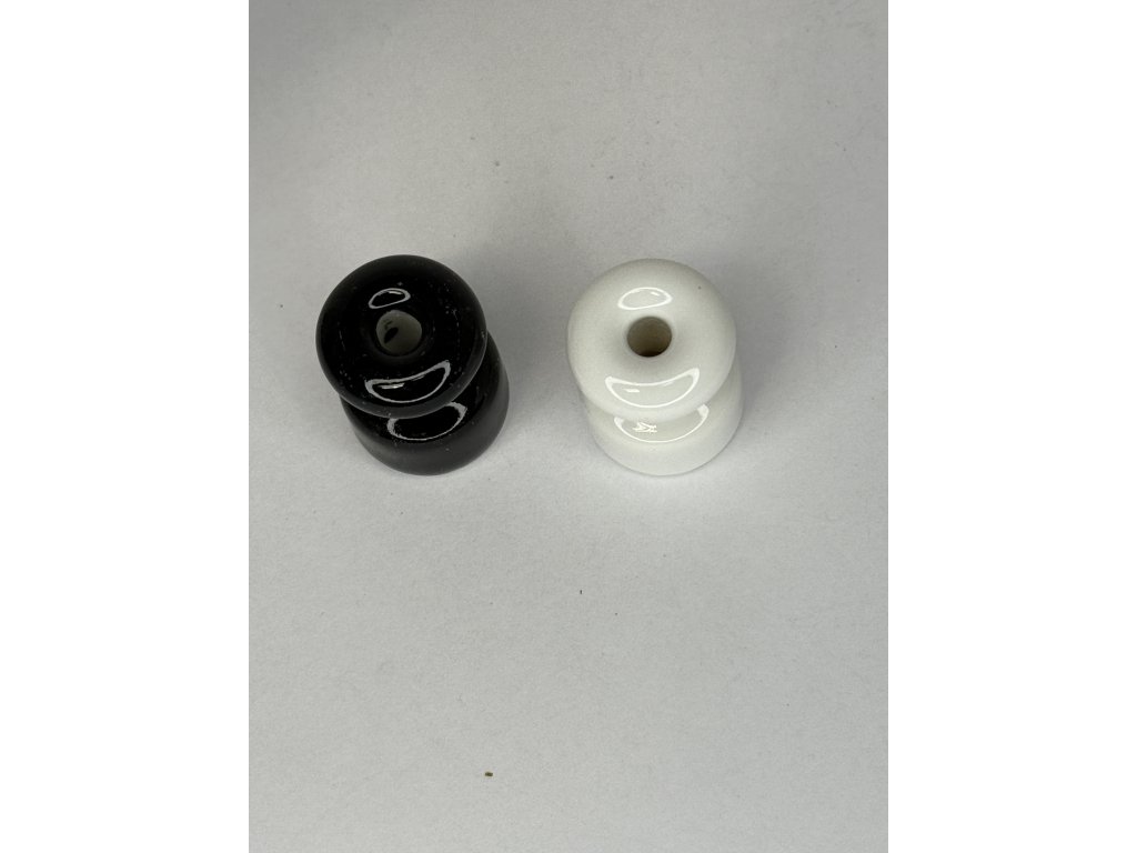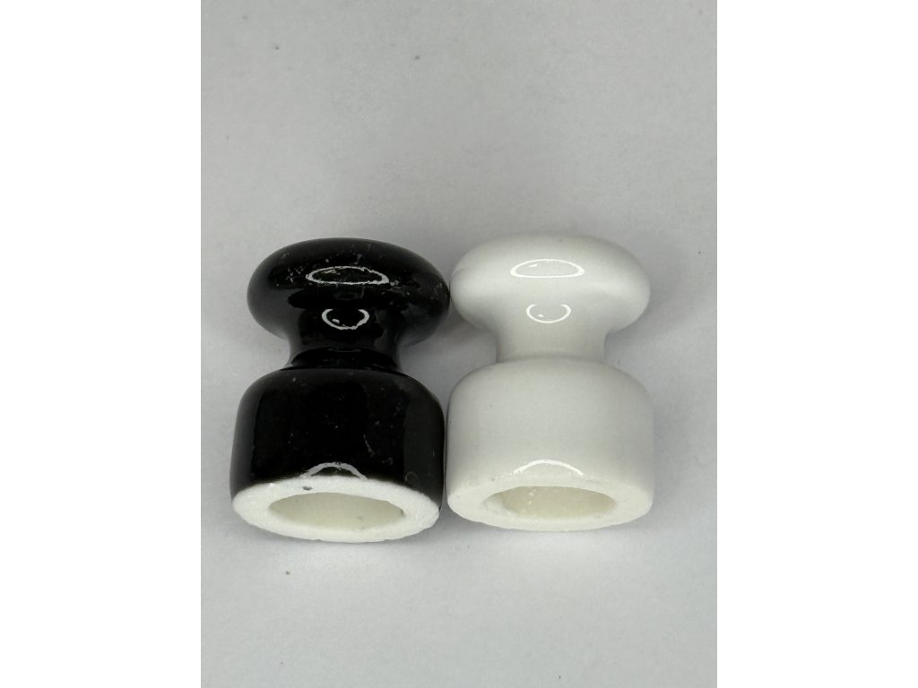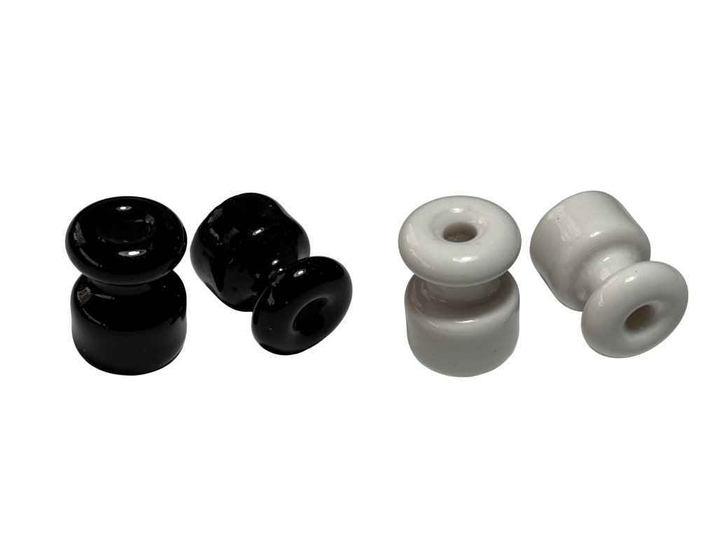 Keramické izolátory v bílé a černé glazuře slouží jako replika starého elektrického vedení, vhodná pro renovace historických interiérů nebo stylové elektroinstalace. Průchozí otvor umožňuje jednoduché upevnění vodiče. Jedná se o repliku starého kování. Rozměr viz. foto