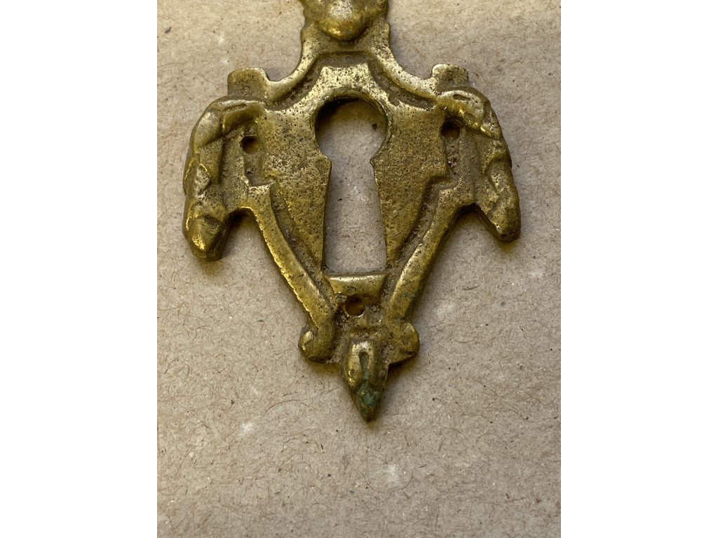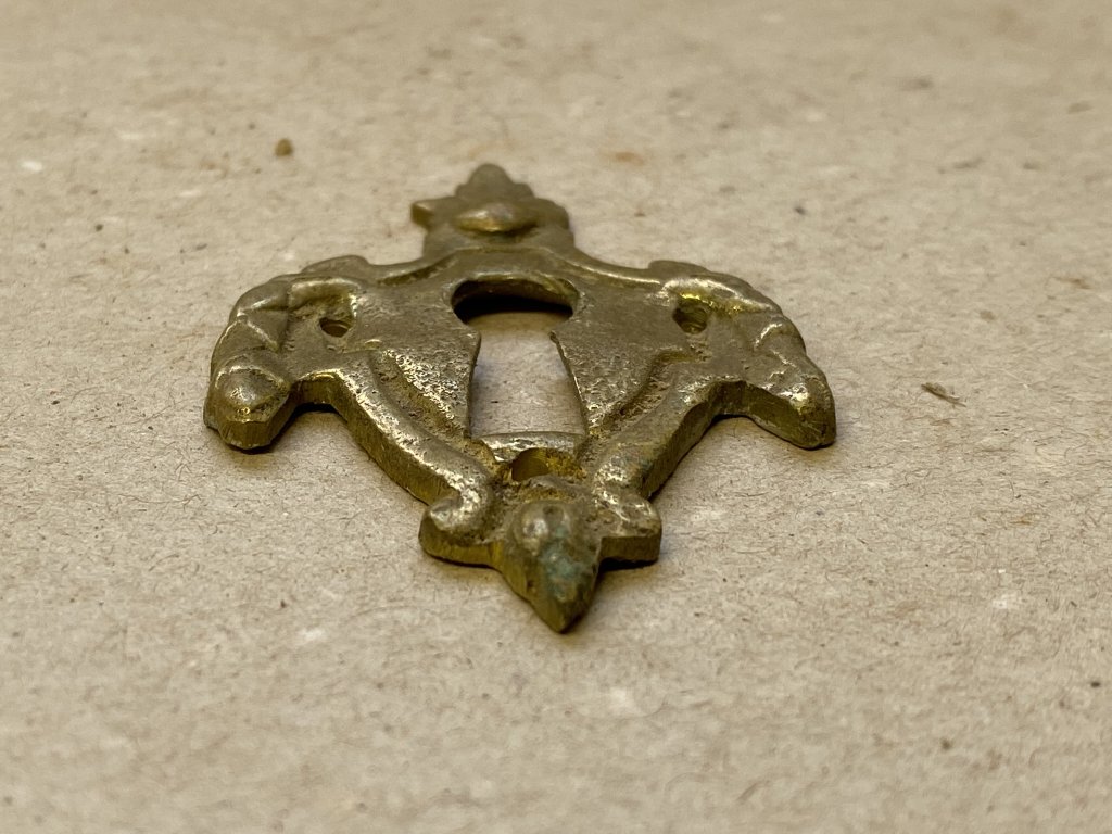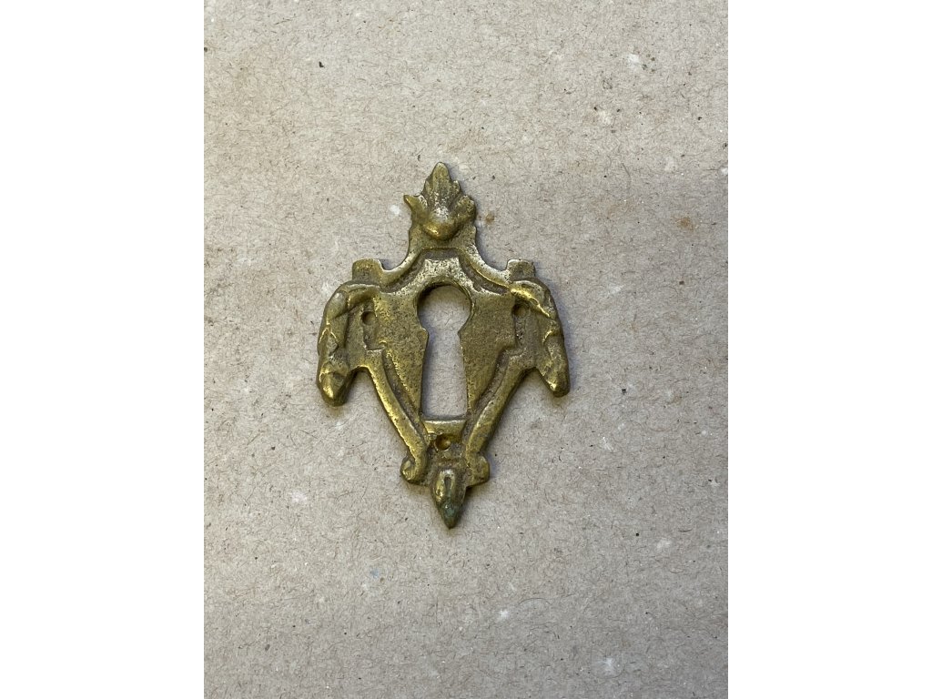 Jedná se o součást nábytkového kování, která sloužila k ozdobení a ochraně dřeva kolem zámku.