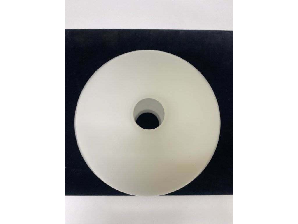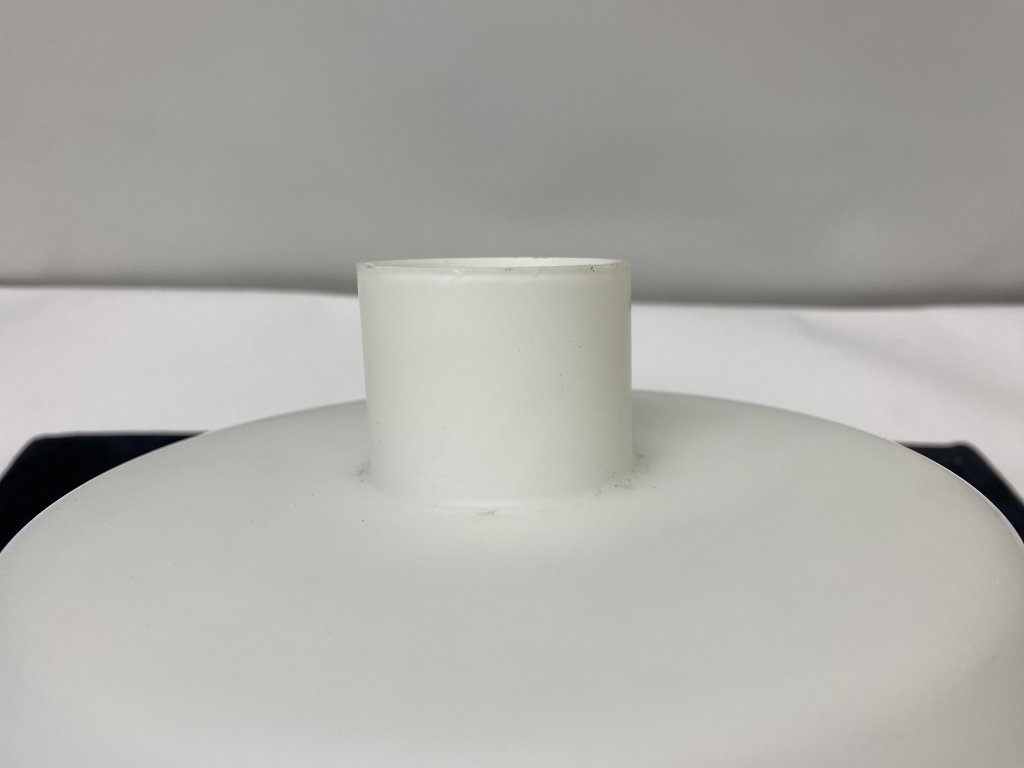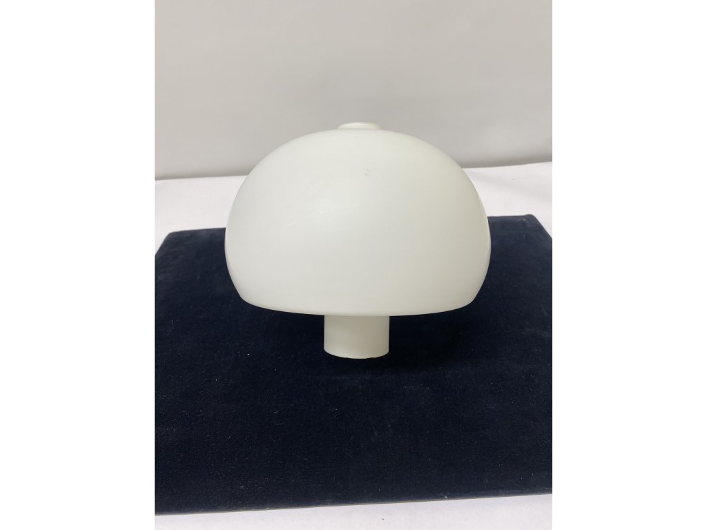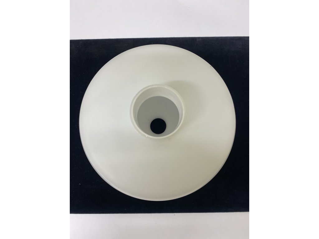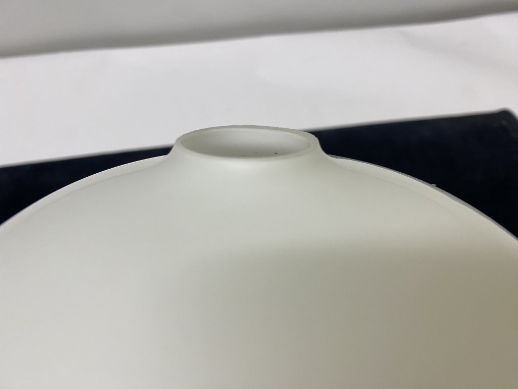 Kulovité stínidlo z mléčně bílého opálového skla s hladkým povrchem a úzkým hrdlem ,výrobce Osvětlovací sklo Kamenický Šenov . Povrch matný, světlo rozptyluje rovnoměrně a vytváří měkký, neoslňující efekt.