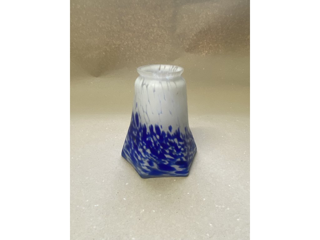 Antikové stínidlo k lampičce, rozměry viz. foto.Stínidlo vyrobené technikou tzv. brokového skla. Tato technika spočívá ve vyválení rozehřátého skla v drobných skleněných úlomcích („brocích“), které se následně roztaví a vytvoří charakteristický skvrnitý nebo žíhaný vzor. Zboží je použité a může vykazovat drobné známky opotřebení odpovídající jeho stáří. Fotografie zobrazují skutečný stav nabízených předmětů, přesto se vzhledem k individuálním rozdílům může zboží v detailech či barevnosti mírně lišit.