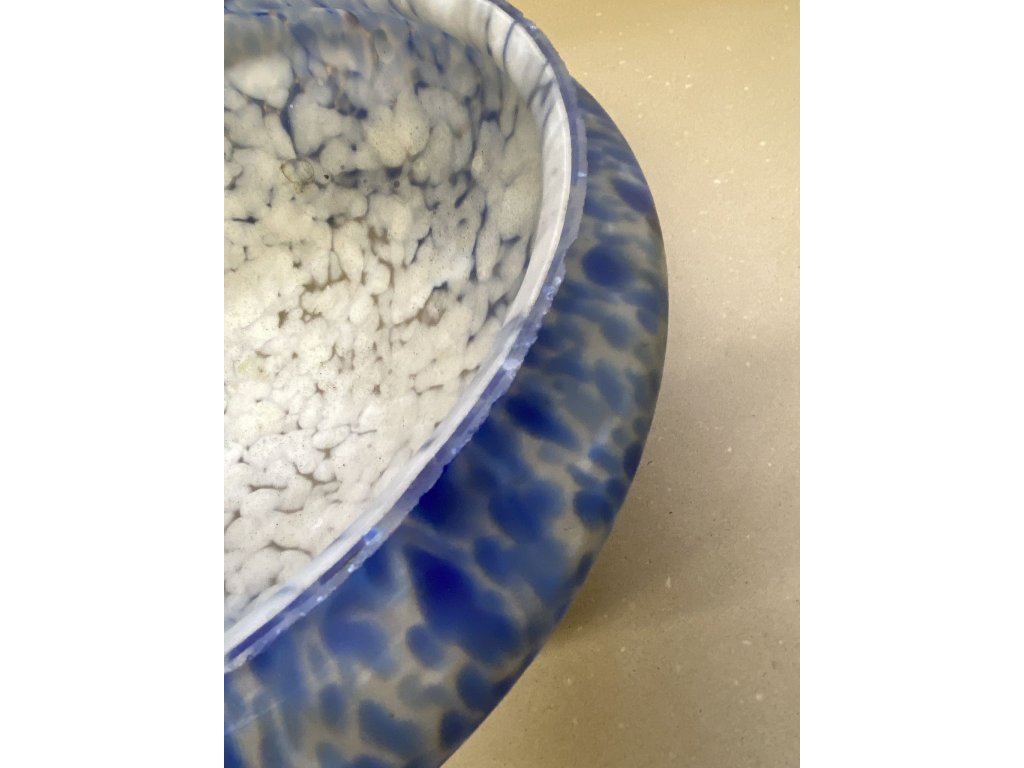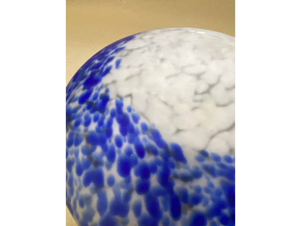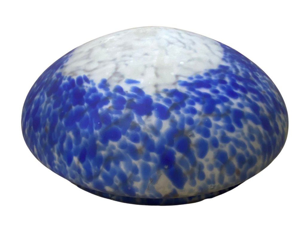 Antikové stropní stínidlo , rozměry viz. foto. Stínidlo vyrobené technikou tzv. brokového skla. Tato technika spočívá ve vyválení rozehřátého skla v drobných skleněných úlomcích („brocích“), které se následně roztaví a vytvoří charakteristický skvrnitý nebo žíhaný vzor.