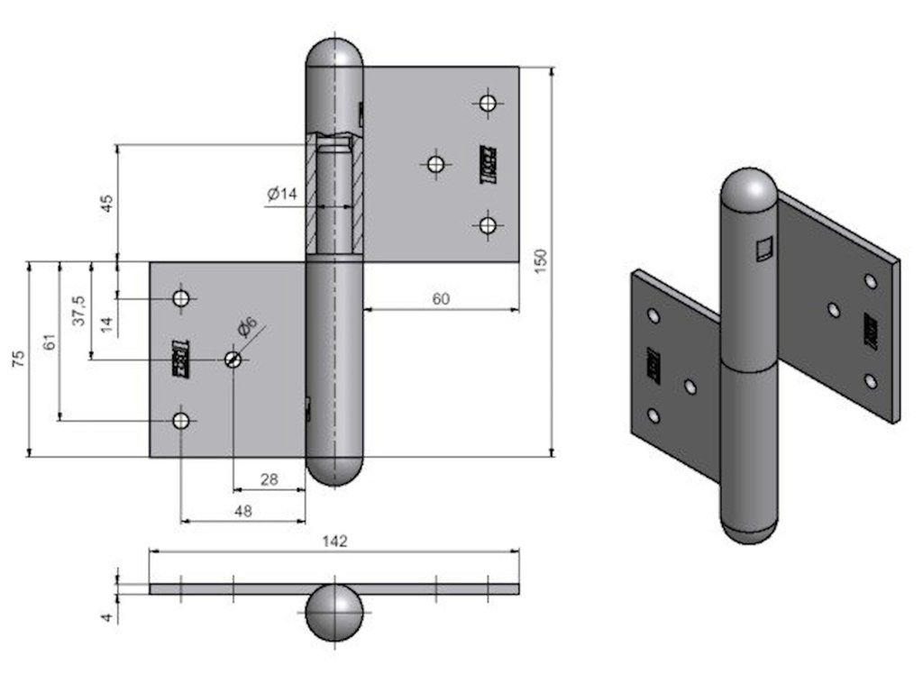 TKZ vratový závěs se používá k otočnému spojení velkorozměrových dveří nebo vrat se zárubní. Spodní i vrchní díl je k zadlabání